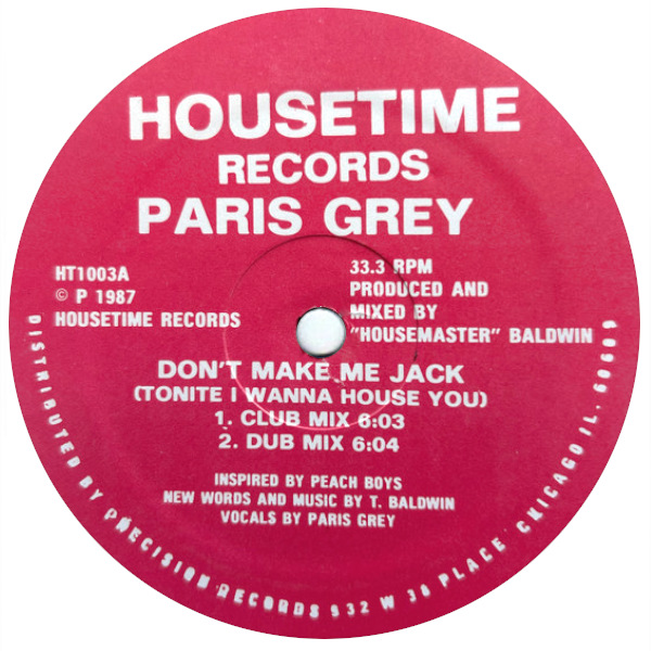 | Paris Grey | Don’t Make Me Jack (Tonite I Wanna House You) | HT1003 | 1987 |