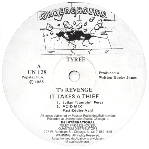 Der Song heißt auf dem Album nur kurz „T’s Revenge“, auf der Maxi erweitert um „It Takes A Thief“. Und geklaut wird hier sehr viel. Zahlreiche Samples werden zusammengefügt, inkl. „U ain’t really House“, „Party People“). Der Song erschien nur auf dem US-Label Underground. Zeitlich eventuell nach „Acid Over“ und vor „Turn Up the Bass“.